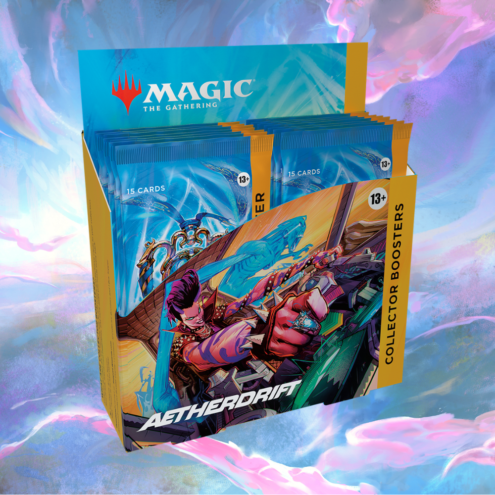 • 12 Aetherdrift Collector Boosters; each Collector Booster contains 15 Magic: The Gathering cards