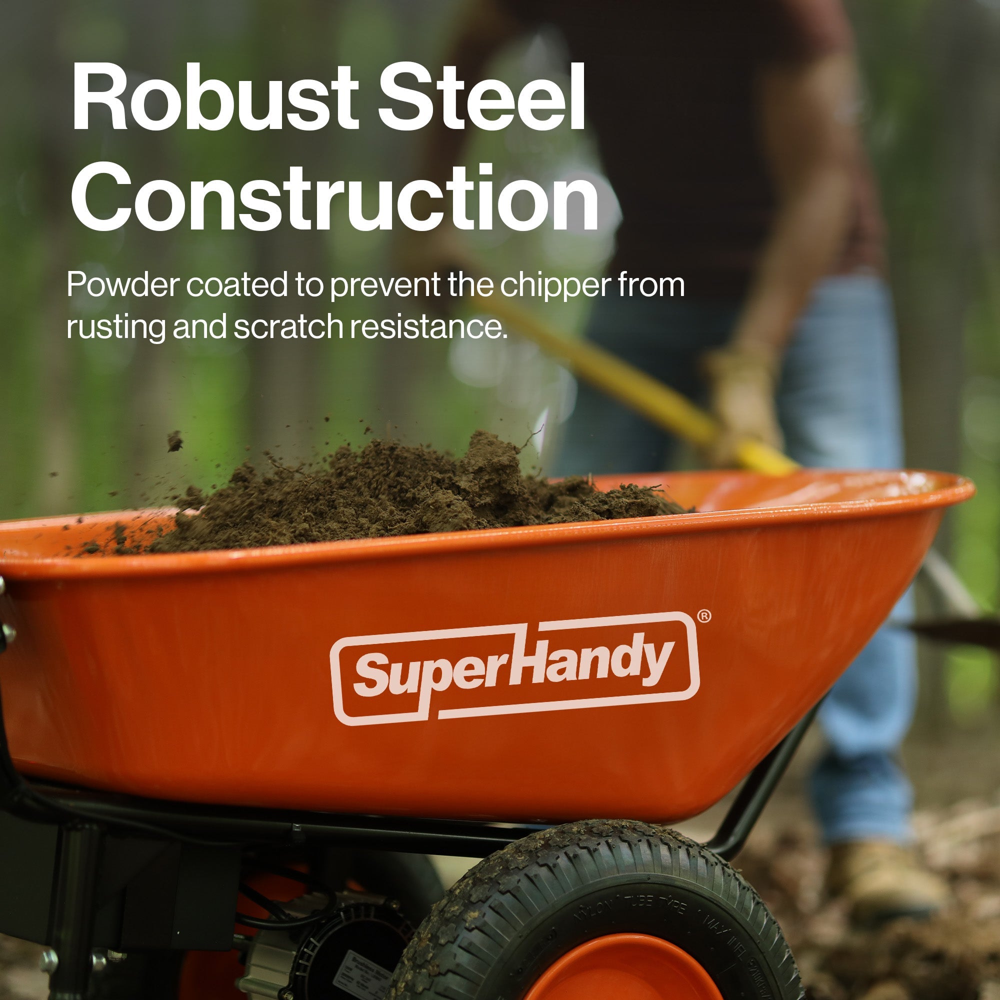 The SuperHandy Electric Wheelbarrow features a 180w brush-less motor with a 48V 88.8w Li-Ion battery, supporting a max load of 150 kg. It’s ideal for gardens, yards, and construction sites, with a 12° climbing ability and an 85L steel tub. Variable speed control, 40 cm all-terrain tires, and 2-5 hours of runtime make it powerful, quiet, and easy to use.